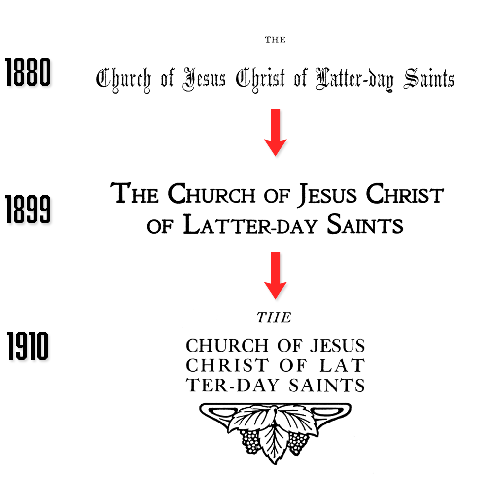 The Church, of course, never used this as a logo. Until the end of the nineteenth century, most businesses didn’t even have logos, let alone churches. Printed materials and signage from this period featured the Church’s name in a wide variety of fonts and styles—some elegant, others more eclectic.